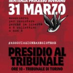 - Presidio 31 Marzo – Tribunale di TorinoLunedì 31 marzo ci sarà la sentenza del Processo Sovrano che vede 28 imputati di cui 16 accusati di associazione a delinquere, compagni e compagne che da decenni si spendono nelle lotte e partecipano alle esperienze politiche e sociali di…